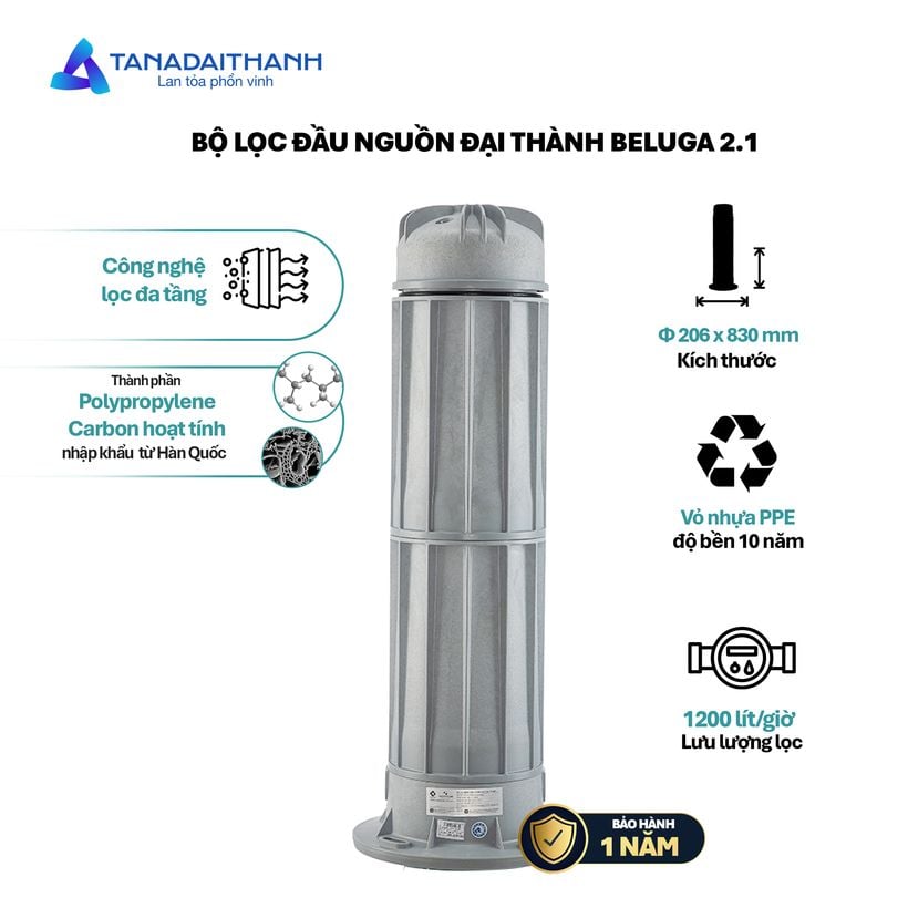 Bộ lọc đầu nguồn Tân Á Đại Thành Beluga B2.1 là lựa chọn tối ưu để cung cấp nguồn nước sạch, trong lành cho cả gia đình. Với thiết kế hiện đại và tích hợp công nghệ lọc tiên tiến, bộ lọc Beluga B2.1 giúp loại bỏ cặn bẩn, kim loại nặng, tạp chất, mang đến nguồn nước an toàn ngay từ đầu nguồn.